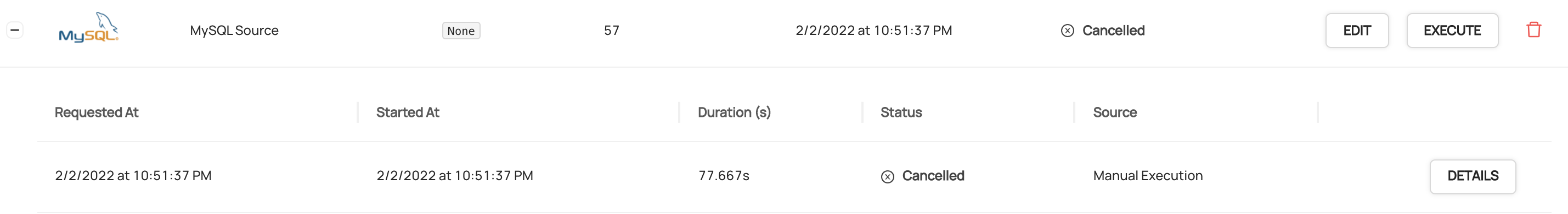 Once cancelled, you can view the output of the ingestion run by clicking Details.
