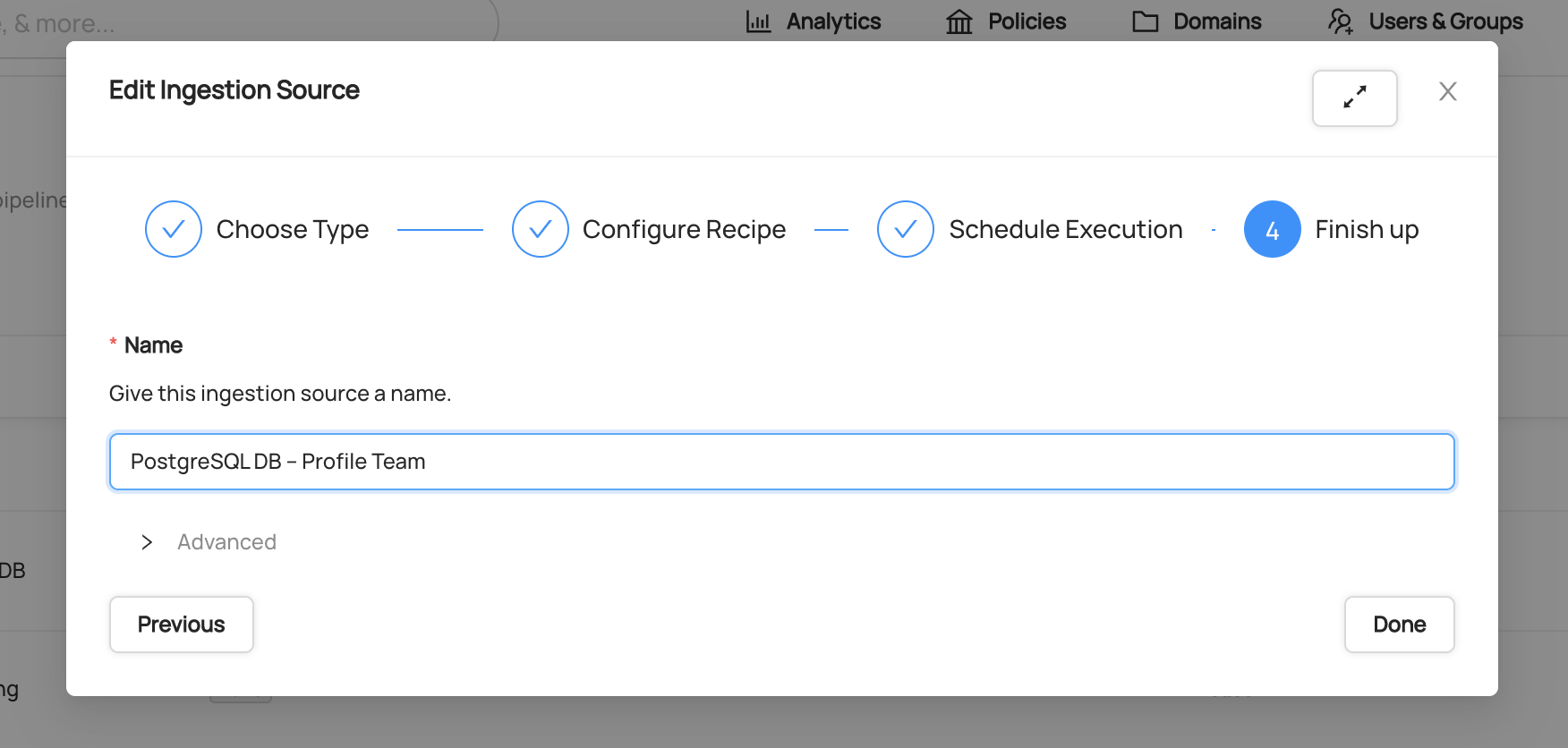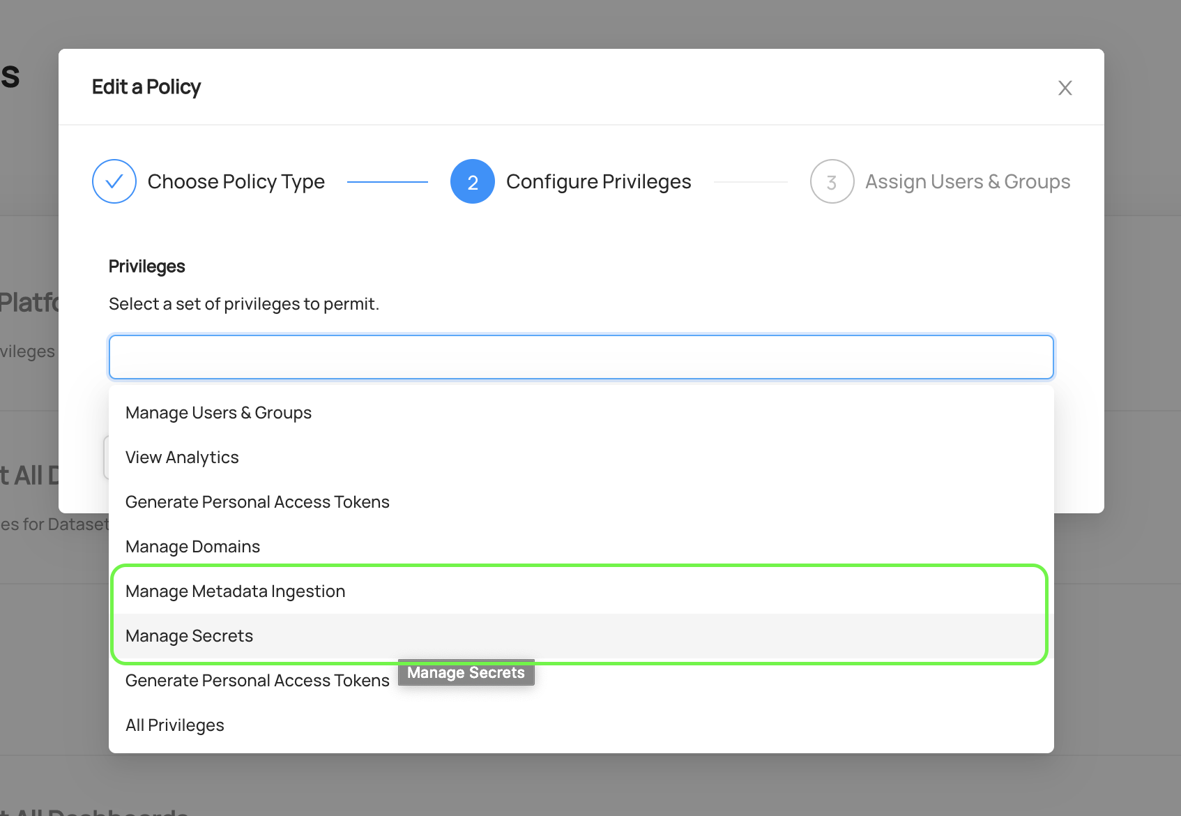 To view & manage UI-based metadata ingestion, you must have the Manage Metadata Ingestion & Manage Secrets privileges assigned to your account. These can be granted by a Platform Policy.